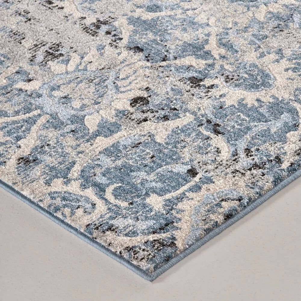 Refined, inky blacks dance with serene, icy blues in the Ainsley collection as striking motifs are grounded by sublime ivory and sophisticated gray. The monochromatic color palette lends a timeless elegance to these bold designs as weathered effects create a sensible gracefulness that adds an opulent approachability.