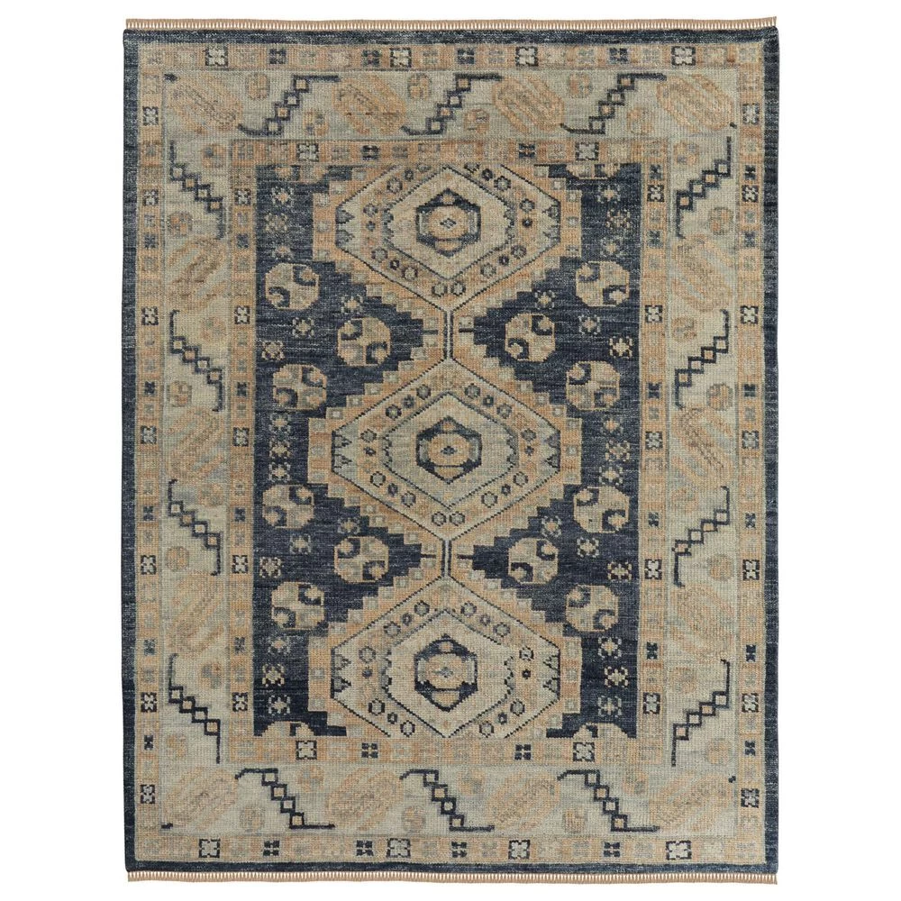 Kaleen Rugs Brooklyn 5′ X 7’6″ Navy, Denim, Bright Teal, Spa, Light Brown, Camel And Linen Area Rug