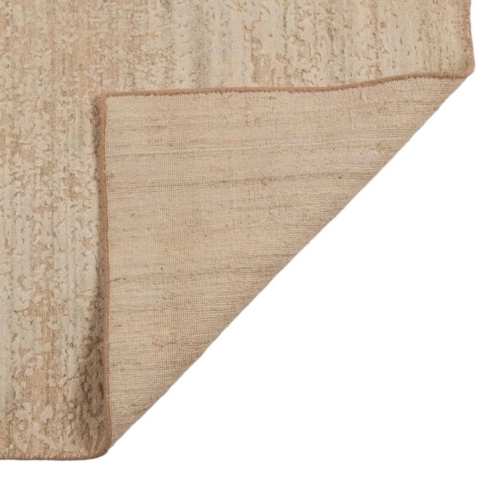 Created in India exclusively by HRI, hand-loomed, wool with viscose highlights. Random shading enhances the high/low densely textured pile of each unique rug. Three abstract designs in four soft shades of blush, champagne, yellow and sand, are all stocked.