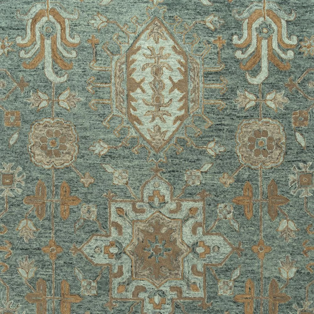 Kaleen Rugs Brooklyn 2′ X 3′ Oatmeal, Turquoise, Light Jade, Dark Jade, Taupe And Linen Area Rug