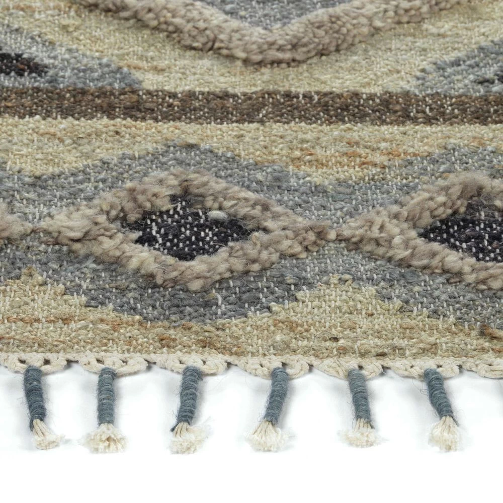 The Kaleen Rugs Alejandra collection is inspired by the art of ancient cultures. Handwoven by Kaleen’s Master Weavers using a blend of natural jute, wool and cotton – these flatweave rugs bring warmth and diversity into any space. Elephant tail style tassels and a detailed macrame edging add unique dimension and texture to every style. Each of the seven designs feature, hand serging, a low pile and open back construction making them as easy to care for as they are beautiful.