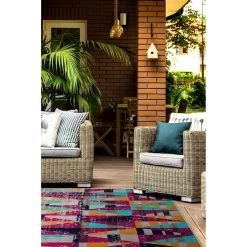 Kaleen Rugs Ostinata 5’3″ X 7’3″ Pink, Grey, Blue, Orange And Black Indoor/Outdoor Area Rug